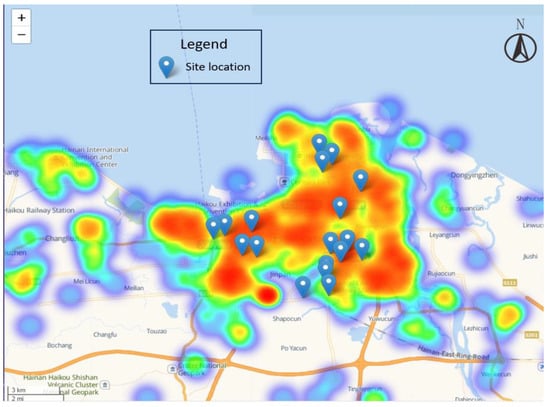 We utilize reverse geocoding to restore the extracted geographical location information to latitude and longitude coordinates and visualize the geographical information in the pollution complaint data. Figure 6 illustrates the spatial distribution characteristics of the complaint corpus information using a heatmap. The results indicate that complaints are mainly concentrated in the comprehensive areas where residents are active, which is highly consistent with the selection of clustering sites in our experiments. This finding not only demonstrates the rationality and practical value of our selected site group in reflecting residents’ concerns about air quality but also further validates the effectiveness of the site selection method.