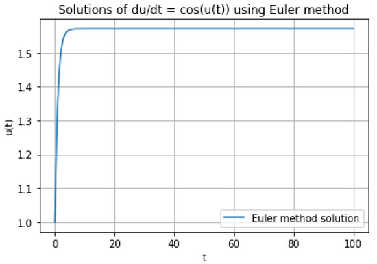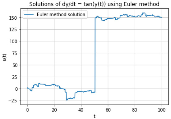 If we set the initial value of (57) as using the Euler method, as shown in Section 4, we obtain the Figure 3 below.
