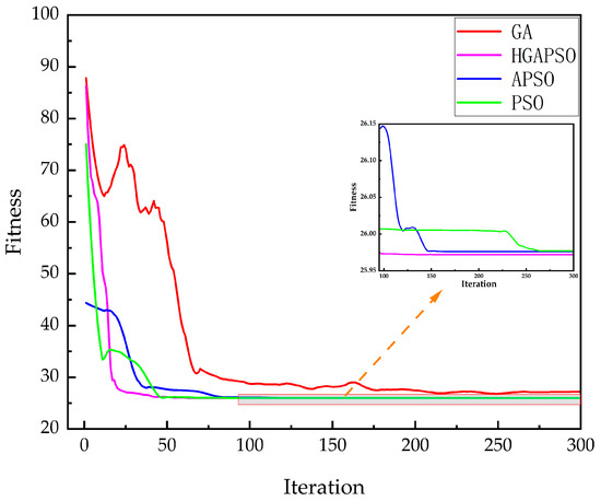 The benefits and drawbacks of the four algorithms are qualitatively analyzed in Table 3, and the following computations were made to quantitatively assess the benefits and drawbacks of the HGAPSO algorithm in comparison to the other three algorithms: