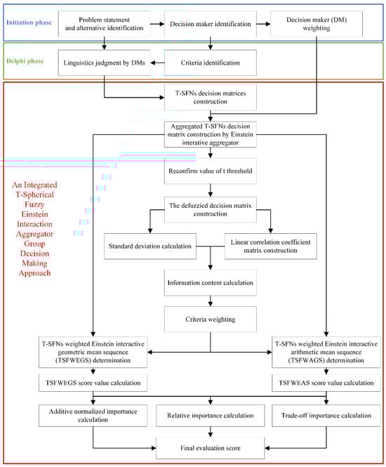 The integrated T-spherical fuzzy Einstein interaction aggregator group decision-making approach.