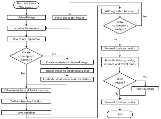 Before proceeding to the mathematical formulation, Figure 2 shows a simplified flowchart of the proposed ABC algorithm adapted to optimize the safety distance of workers on construction projects, whose routines were later programmed in MATLABTM.