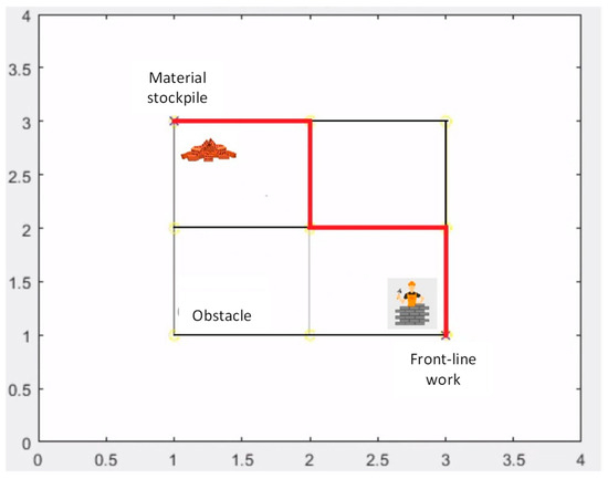 In this sense, the workers’ movements within a construction zone can be treated as a route optimization problem. Routing optimization problems on networks consists of finding paths between the nodes of the networks efficiently, where their solutions have proven to be essential to solving many real-world decisions in applications as diverse as logistics, transportation, and computer networking, among others [23]. In construction, it is also possible to find research and applications related to routing optimization problems such as the optimization of construction and demolition waste transportation [24] and inventory routing problems for construction-related transport [25]. Similarly, other investigations have focused on optimizing workers’ movements while dealing with construction inefficiencies and their impact on quality, scheduling, safety, and health [26]. Another example of complexities within construction is the site layout planning, where ABC-based algorithms have proposed optimal layout plans with low costs and safety facilities [7].