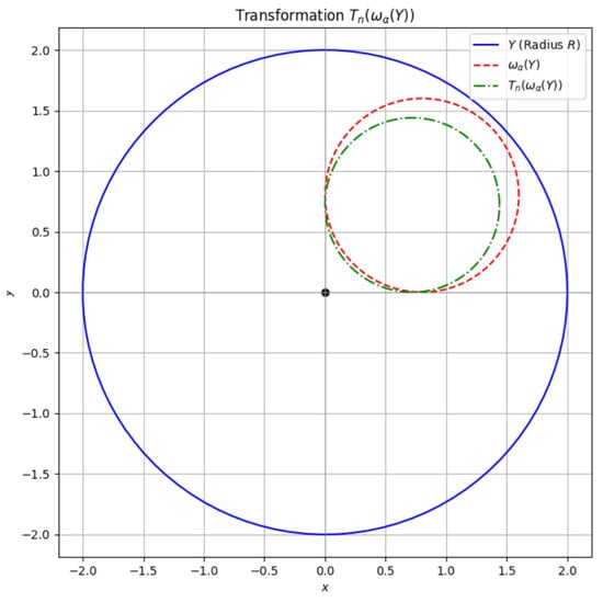 # Plot the ball Y, \omega_{\alpha}(Y), and T_n(\omega_{\alpha}(Y))
