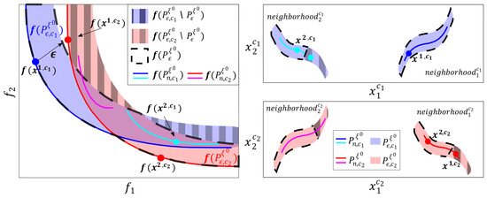 ϵ-efficiency [33]: The set of ϵ-efficient solutions (denoted by ) is the set of solutions in that are not ϵ-dominated by another solution in :