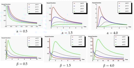 happened, as we can see this effect very clearly from the graph. It is clear to us from this figure that the hazard rate of the NP distribution may exhibit either an upside-down bathtub (unimodal) shape or a decreasing trend, contingent upon the values of various parameters.