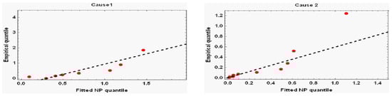 Section 3, maximum likelihood estimators (MLEs) and corresponding approximate confidence intervals (ACIs) for the NP distribution’s unknown parameters in the progressively censored competing risk setting are derived using the Newton–Raphson (NR) method. The existence and uniqueness of MLEs are also discussed in this section.