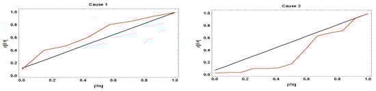 Consider a life testing experiment commencing with a set of identical units, where the failure times of these units are denoted by . To simplify, let us assume that there are only two distinct causes of failure. Thus, for each unit , we have , where represents the latent failure time of the ith unit under the kth cause of failure. We make the assumptions that the latent failure times and are statistically independent and the pairs () are identically and independently distributed (i.i.d).