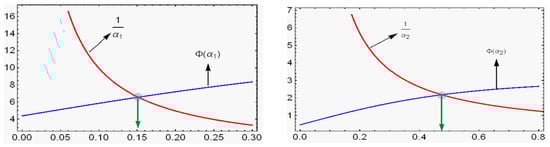 , the crossing points of the two functions (