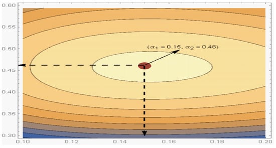 Finally, it can be seen that for point and interval estimations with various combinations of sample size () and censoring schemes, the Bayesian technique with an informative prior provides excellent results. Additionally, varied estimates of the parameters exhibit varied performances under varied loss functions. As a result, if it is possible to access previous knowledge about the unknown parameters, the Bayesian approach is preferable. If not, we often select the Bayesian approach with a non-informative prior when the sample size is modest.