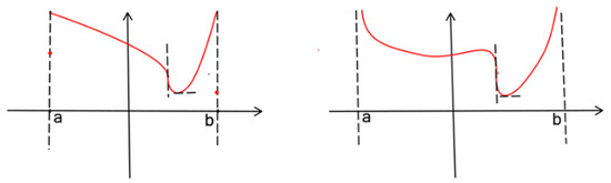 We will prove that, in the present case, the function g is endowed with a minimum, and that the minimum is attained at a point interior to J; after that, it will be easy to establish, by a classical argument, that . In the other case, where the proof is entirely analogous, the function is endowed with a maximum, attained at a point interior to J.