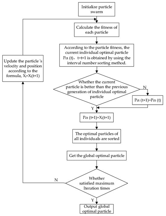 The global optimal particle is the best position reached by all the current particles. The possibility matrix is obtained by comparing the interval fitness of the individual optimal particle of the current population. Then, the interval fitness is ranked according to the complementary possibility matrix ranking method, and the first is regarded as the global optimal particle. The specific processing algorithm steps are as follows: