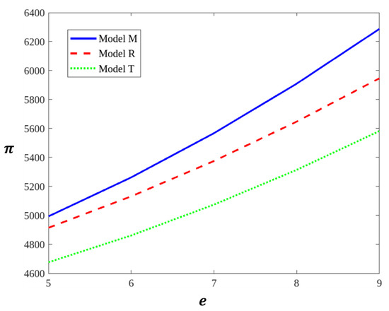 In model T, we assumed that the manufacturer first determines the wholesale price and the unit transfer price , then the retailer responds to the manufacturer’s wholesale price by determining the retail price , and the third-party recycler determines the recycling price . The profit function of the manufacturer, the retailer and the third-party recycler is defined as Equations (14)–(16).