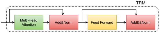 where and V represent the query, key, and value, respectively. Because the self-attention mechanism is used in the Transformer, and V are generated by the same vector. In multi-head attention, the vector is divided into several parts to calculate independently during the calculation process, as shown in Formula (8):