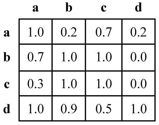 In the comparison between two alternatives, a,b∈A from Figure 2, the following question can be answered: What is the degree of credibility that a is at least as good as b? In this case, the answer is Sσ(a,b) = 0.2. In the same sense, when faced with the question: What is the degree of credibility that b is at least as good as a? The answer is Sσ(b,a) = 0.7. It should be noted that the closer the response value is to 1.0, the more credible it is that any alternative is at least as good as the other alternative in question.