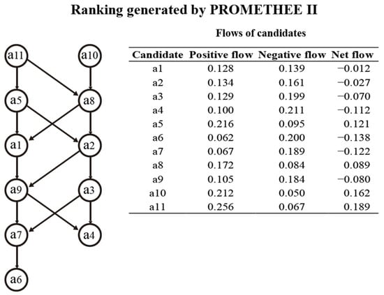 However, the ranking obtained with the Net Flow Rule did not reflect the best candidate to be selected. Then, the decision-maker requested to analyze the ordering based on the candidate, which would provide greater certainty concerning the rest of the candidates, considering the preference relations between several alternatives. To support the selection of candidates, the PROMETHEE I and II methods were used. They used preference functions to model the preferences of the decision-maker. They used a preference approach where alternatives are compared in pairs based on each criterion. The PROMETHEE I generates a partial preorder using positive and negative flows, meanwhile PROMETHEE II generates a total order using net flows, which are obtained by the difference between positive and negative flows.