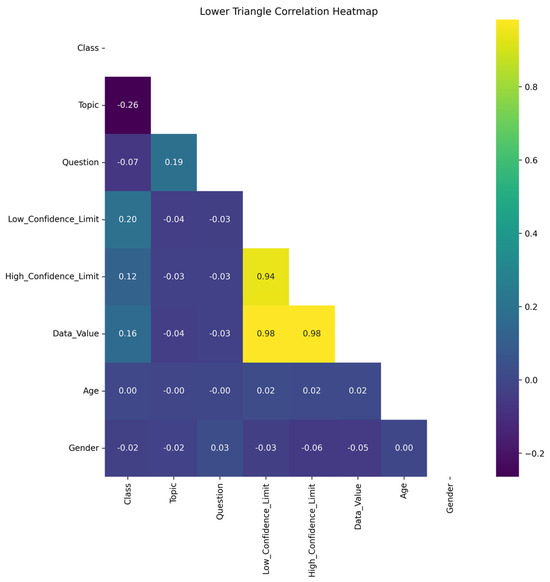 Lower triangle correlation heatmap for Alzheimer’s disease classification.