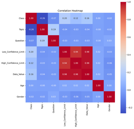The dataset is available on Kaggle, which is an enormous repository of datasets covering various domains of healthcare, finance, and social sciences. The sample source is an extract from Alzheimer’s Disease and Healthy Aging Data in the United States, which contains data from the Behavioral Risk Surveillance Systems (BFRSS) [28], which collects telephone-related surveys of United States citizens related to chronic health conditions and tabulates the values. The data were pre-processed but initially had about 250,000 row dataset values with 16 tabular columns. A sample dataset is tabulated before feature engineering and normalization in Table 2.