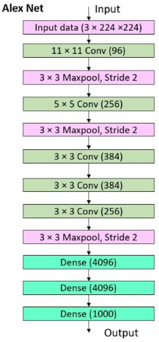 The limitations of machine learning algorithms are data dependency, complex algorithms, and overfitting [23]. To overcome them, Visual Geometry Group-16, Visual Geometry Group-19, and Alex Net transfer learning approaches are used as they are simple, unified, and have pre-trained models with greater depth. The proposed transfer learning approach model with neural network approach algorithms with modalities of VGG16, VGG19, and AlexNet are used for building the model by choosing inputs and evaluating them on healthy datasets from the Behavioral Risk Surveillance Systems [18] to classify and predict Alzheimer’s disease and enhance diagnostic accuracy by providing a more comprehensive view of an individual’s health. The proposed algorithms, by and large, are used for image data, but to convert them to numerical data, several steps like data reshaping, adaptation of the input layer, data processing by the convolutional layers, and training are involved. VGG16 reshapes data and feeds it into the convolutional layer, and the model is trained from scratch or fine-tuned as it is exclusively used for numerical data. The convolutional layers’ output is fed into the fully connected layers. VGG19 has 19 deeper layers, and thereby, capturing the complex features and hierarchical representations is easier. VGG16 and VGG19 use 3 × 3 convolutional and max pooling layers, ensuring that they capture broader and better features. Reshaped data are fed into the VGG19 architecture, and they need to be modified to accept the specific reshaped dimensions. The convolutional layer helps with data processing and applies filters to the reshaped feature arrangement. Extensive hyperparameter tuning and regularization can be used to reduce overfitting.