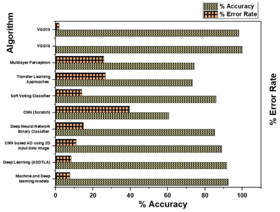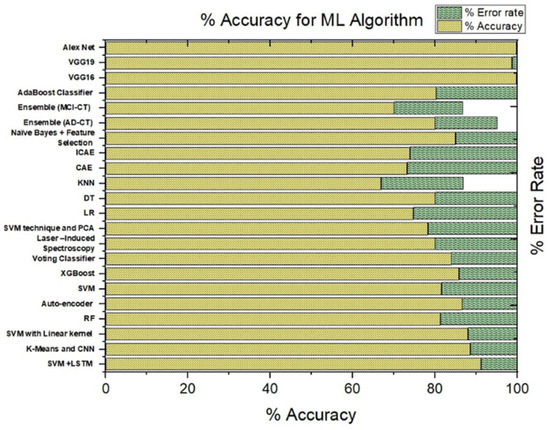 Accuracy and error rate of machine learning approaches for Alzheimer’s classification.