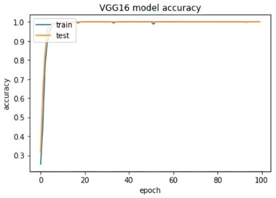 Epoch and accuracy for VGG16 model for Alzheimer’s classification.
