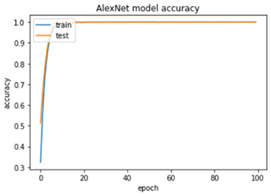 Results are tabulated in Table 6, and a graphical sketch of accuracy and error rate is shown in Figure 13 for a neural network approach. VGG16 and Alex Net had 99.9%, and VGG19 had 98.8%, outperforming the existing neural network approach with the graph in Figure 14. Figure 15 indicates the training and testing data for the proposed VGG16 model for accuracy, and for each epoch, a complete pass through the entire training algorithm was required to determine when the parameters of the model needed to be updated and train it for multiple epochs, and its values are tabulated in Table 7.