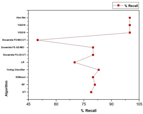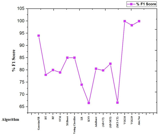 - The chosen healthy aging dataset was pre-processed; the Transfer Learning Approach model was used; and VGG16, VGG19, and Alex Net algorithms were applied that aim to classify Alzheimer’s disease (AD) and employ 10-fold cross-validation.