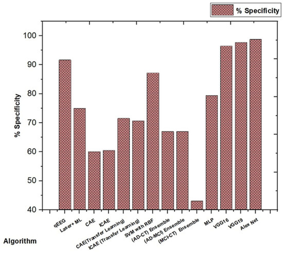 Specificity values for ML algorithm for Alzheimer’s disease classification.