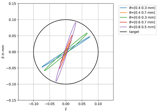 Inspecting the confidence ellipses using the optimized sensor arrangement proves that no ellipse is violating the desired minimum uncertainty (Figure 13).