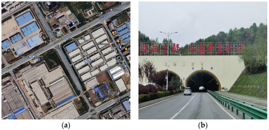 Satellite image of the test route and actual environment: (a) satellite image of public roads; (b) Highway tunnel.