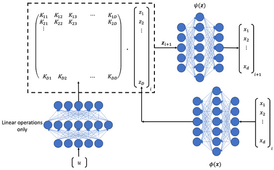 An alternative route, which is specially appealing for control purposes, consists of augmenting the latent space of dimension D with the physical state such that the resulting dynamical system reads as
