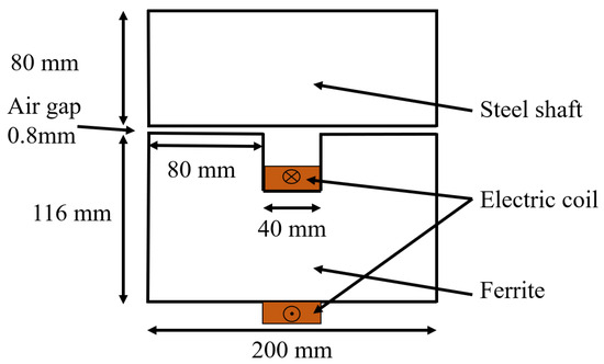 The considered magnetic bearing geometry is shown in Figure 12. The electromagnetic problem is solved for different sequences of the applied voltage values of , where .