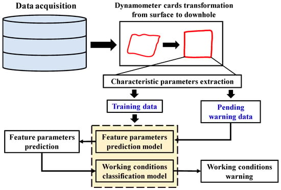 By inputting the predicted characteristic parameters into the above working condition classification model, the future working conditions can be predicted as well, which provides intuitive working conditions warning results for the site. The research technical route is shown in Figure 6.