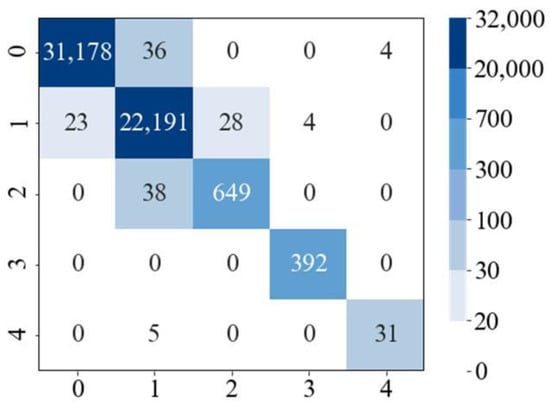 Based on the extraction results of the characteristic parameters, the Xgboost classification model was constructed to obtain the mapping relationship between parameters and working conditions. Based on the data volume, number of features, and experience, the values of the main hyperparameters are set out in Table 2.