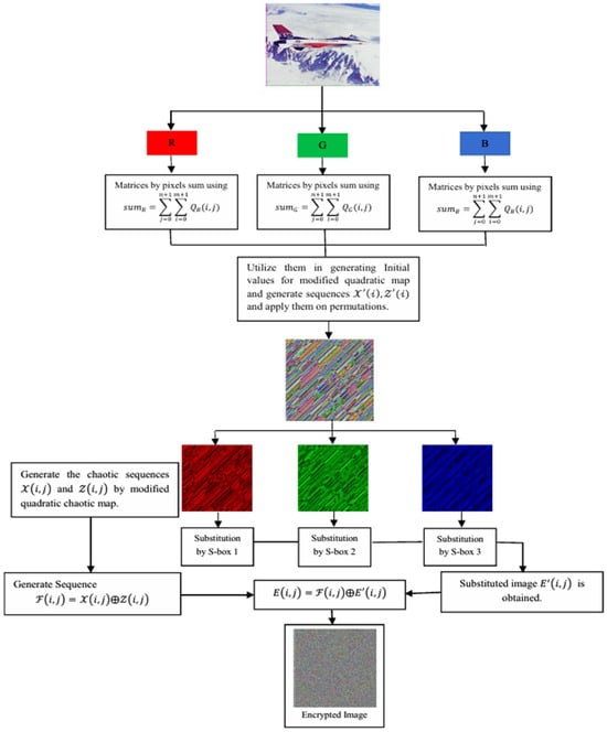 where belongs which is used for byte substitution for using S-box1. Hence, we obtain the final encrypted image for the red layer . We can repeat the process by using for .