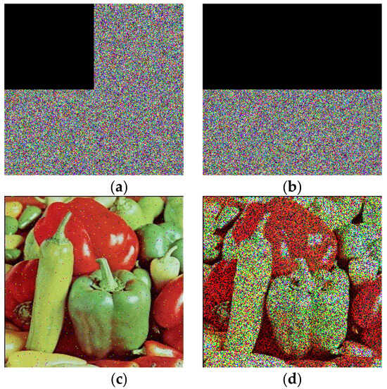 - Iterate the modified quadratic map given in Equation (1) by using the initial values obtained in Step 3. Hence, new sequences are generated. Now, the image pixels are permuted row and column-wise utilizing sequences . Then, the permuted image , is obtained.