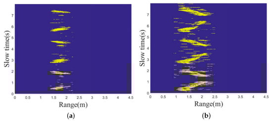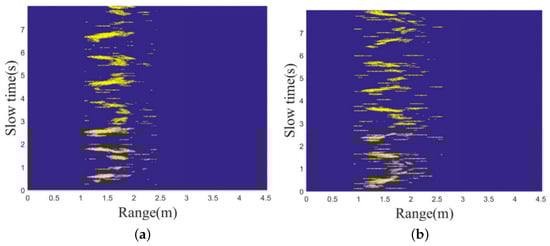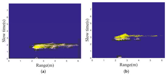 Figure 8 and Figure 9 depict the radar signal images from two different experiments. These images demonstrate how changes in motion direction relative to radar positioning can affect the data collected, affirming that multiple radars can yield consistent and comparative data on human motion.