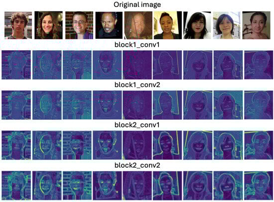 As illustrated in Figure 2, our model takes an input size of 224 × 224 × 3. The architecture starts with a block containing two convolutional layers followed by a max pooling layer. Max pooling is a downsampling technique used to reduce the spatial dimensions of the input representation, which helps to lower computational load, control overfitting, and enhance the network’s robustness. This step is essential in CNN architectures to simplify the representation while preserving important features.