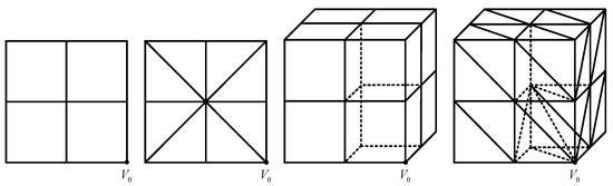 Persistence is underused in applications, in large part because of its high computational cost. The standard algorithm [30] requires three runs, which may be prohibited even for small-size data (for example, 64 × 64 × 64). In addition to the high time complexity, there are two problems: (1) the currently available memory consumption is very large, even for small data, so it is forbidden for commodity calculation; (2) several applications focus on higher dimensional data, such as 4D, 5D, or higher. There are few implementations of general dimensions, and the existing implementations cannot expand well with the increase in dimensions, thus introducing larger computing time and low memory efficiency. Hubert Wagner et al. [31] proposed an effective computing framework, which focuses on uniform or periodic sampling data common in visualization and data analysis, that is, image data include pixels (2D images), voxels (3D scanning, simulation), or their high-dimensional analogies, such as 4D time-varying data. In this work, the name “cube” is used to represent these data. This method uses a specific triangulation, namely Freudenthal triangulation [32]. This triangulation can be easily extended to general dimensions.