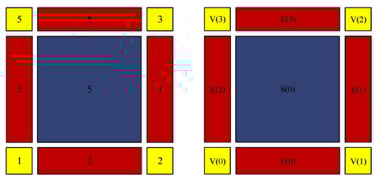 The specific operation of the cube complex for image data processing is as follows: firstly, the input of the cube complex requires a square image. Its input requirements are different from that of witness complex flow. It does not input point cloud data, but directly inputs pixel matrix. Take a 2D image with 5 × 5 pixels as an example, as shown in Figure 4. Because of the regular structure, the relationships between cells can be immediately read from their coordinates, and the necessary information for each cell (i.e., order in filtering, function values) can be stored in a 9 × 9 array. You can then immediately obtain the dimension of any cell (whether it is a vertex, an edge, or a square), as well as its face and coplanar, that is, the cell where it is a face. This is achieved by checking that the coordinates are modulus 2, because cubes can be defined as the product of intervals, and even coordinates correspond to the degenerate interval of a cube. This structure is called cube graph, and the main advantage of this data structure is improved memory efficiency. Boundary relationships are implicitly encoded in the coordinates of the cells, which themselves are implicit, and each cube persistence can be accessed randomly. The above properties are applicable to any dimension because of the inductive structure of the complex of cubic complexes and the fact that the cube is the product of intervals.