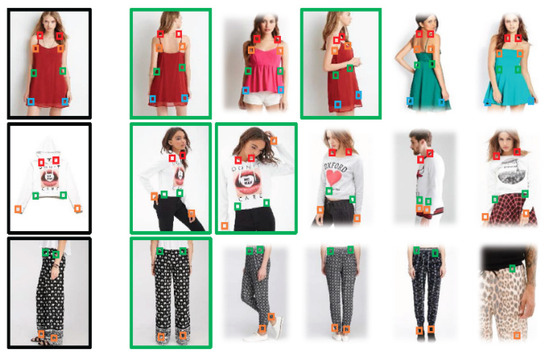 - Wang, Z.; Gu, Y.; Zhang, Y.; Zhou, J.; Gu, X. Clothing retrieval with visual attention model. In Proceedings of the 2017 IEEE Visual Communications and Image Processing (VCIP), St. Petersburg, FL, USA, 10–13 December 2017; pp. 1–4. [Google Scholar] [CrossRef]
