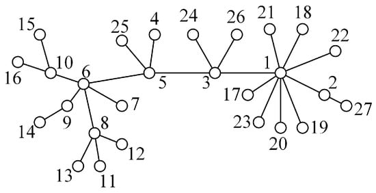 Betweenness centrality [39] can reflect the importance of a vertex as the medium of information interaction for other vertices. Its definition is shown in Equation (6).
