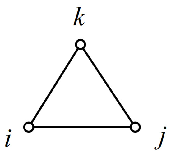 In this model, we also consider the triangular structure to measure the closeness between node pairs. Its specific structure is shown in Figure 4. If node i and node j have a common neighbor node k, a triangle is formed between , which indicates that they have a close relationship. We measure the closeness between node i and node j by the number of neighbor nodes between them. The number of triangles can be expressed by Equation (15).