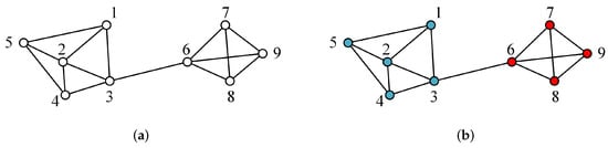 - Girvan, M.; Newman, M.E.J. Community structure in social and biological networks. Proc. Natl. Acad. Sci. USA 2002, 99, 7821–7826. [Google Scholar] [CrossRef] [PubMed]