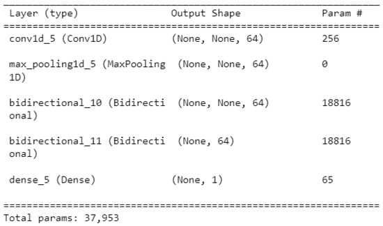 CNN-BiGRU modelling in Python showing the arrangement of layers, output shape, and parameters.