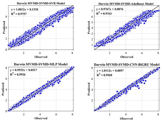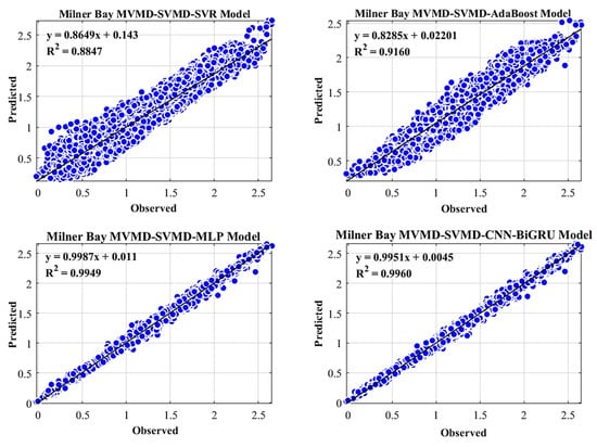 Most studies have either used a single standalone machine learning model [,,] or employed single data decomposition with machine learning models [,,] for SLR predictions. To date, no SLR study has employed PCA analysis with data decomposition to optimize the data inputs. Hence, this study utilizes CNN-BiGRU as its objective model and implements double data decomposition for feature extraction. To compare and analyse how double data decomposition enhances prediction accuracy, the study also uses Multilayer Perceptron (MLP), Support Vector Regression (SVR), and Adaptive Boosting Regressor (AdaBoost) as benchmark models. While many studies have used single data decomposition techniques, this study is novel as it is the first study, to the best of authors’ knowledge, to explore a double data decomposition method for sea level prediction in Australia. These exploratory approaches culminate in a new double data decomposition method of Multivariate Variational Mode Decomposition (MVMD) and Successive Variational Mode Decomposition (SVMD), followed by the Principal Component Analysis (PCA) for optimal dimensionality reduction. This method presents a new approach for sea level rise study in Australia. Specifically, the objectives of this research are the following: