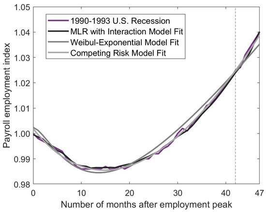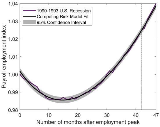 Competing risk model fit to the 1990–1993 U.S recession dataset.