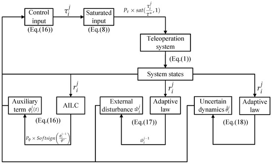 - By expanding the preliminary work in [29,30,31], we propose a dual-loop AILC scheme for teleoperation systems. A D-type ILC loop is nested within a main loop constructed by the controller and system states. The proposed AILC accounts for parametric uncertainties, external disturbances, input saturation, and time delay.