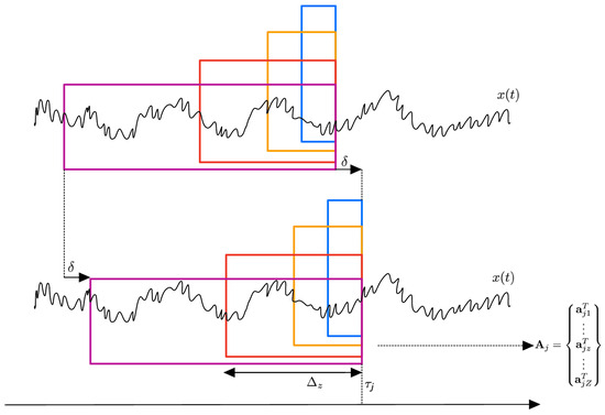 Consider a discrete signal composed of N equispaced samples, . The overlapping window division is defined through a sliding temporal window as: