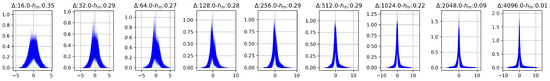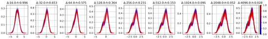 Plots of PDFs generated from the EEG signal at various scales, . A bandwidth, , has been selected for each scale using the JSD-h algorithm.