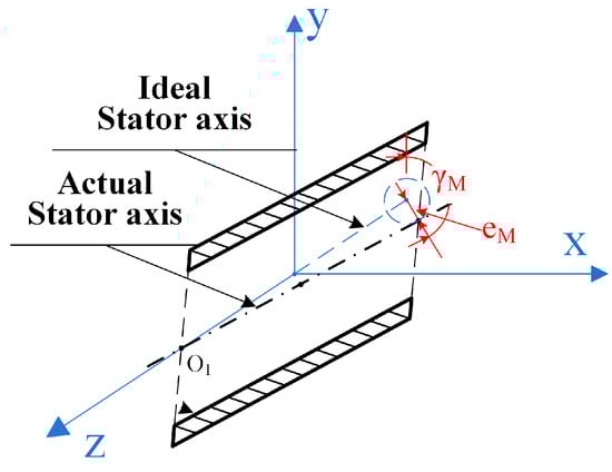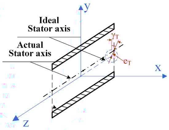 The coordinate system is established with the origin located at the central point of the ideal stator axis that coincides with the -axis.